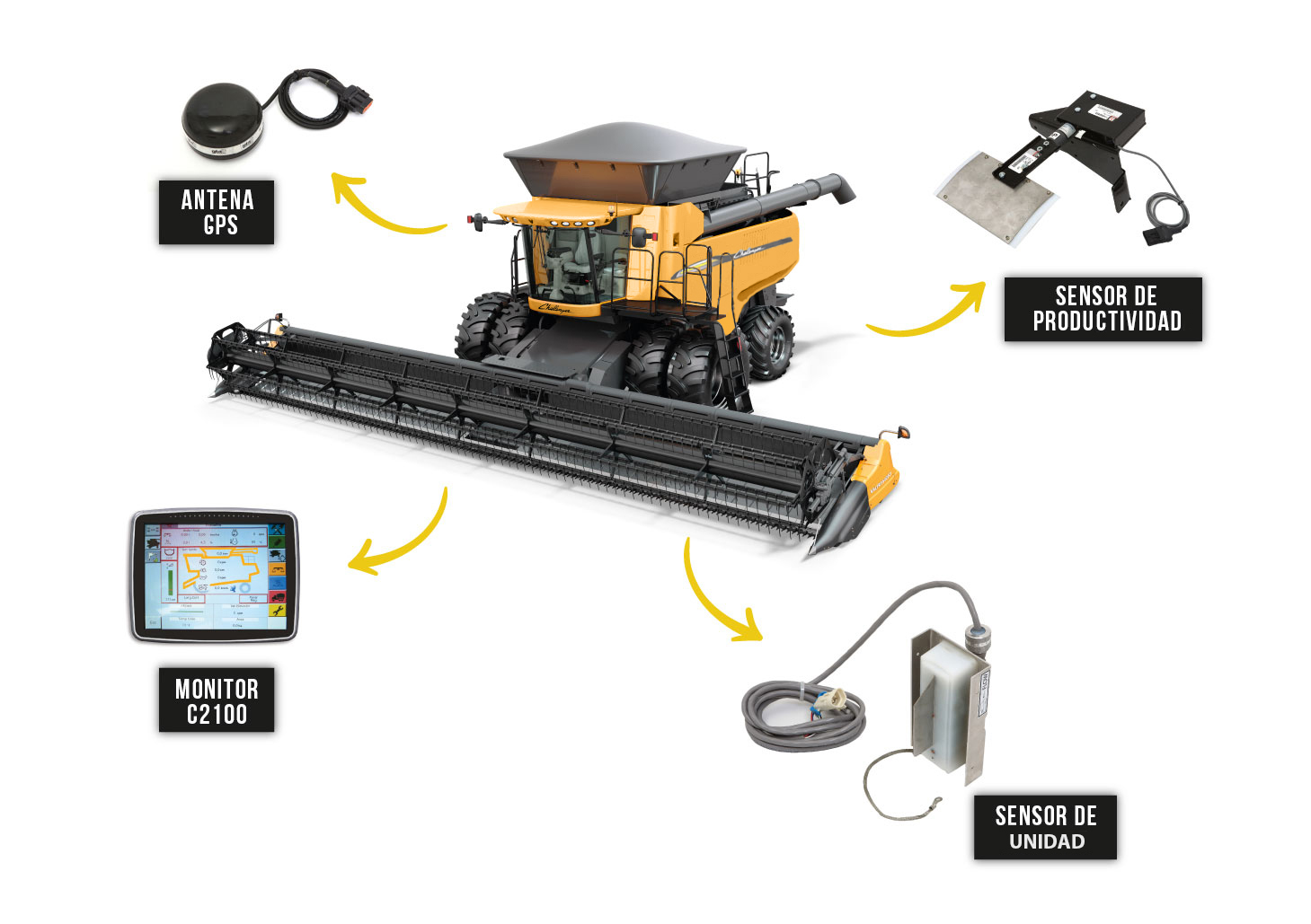 Cómo funciona FieldStar II: trabaja con la cosechadora recolectando información de la operación que permite generar mapas donde es posible identificar con precisión áreas de alta y baja productividad. También aporta el porcentaje de humedad en cada punto de su cultivo. Estos datos se pueden almacenar en un dispositivo móvil y transferir a un software de procesamiento especializado para generar mapas personalizados según las necesidades de cada productor.